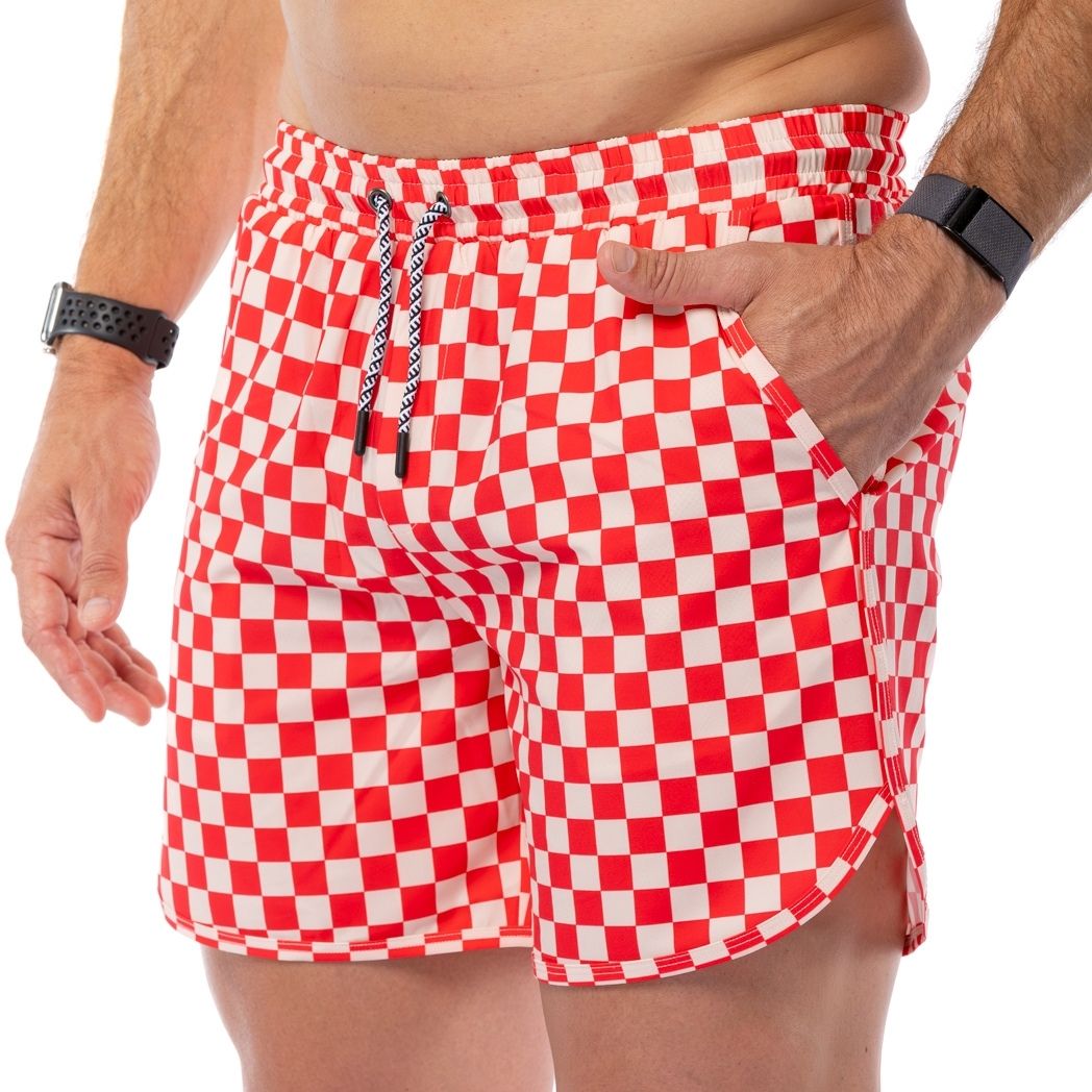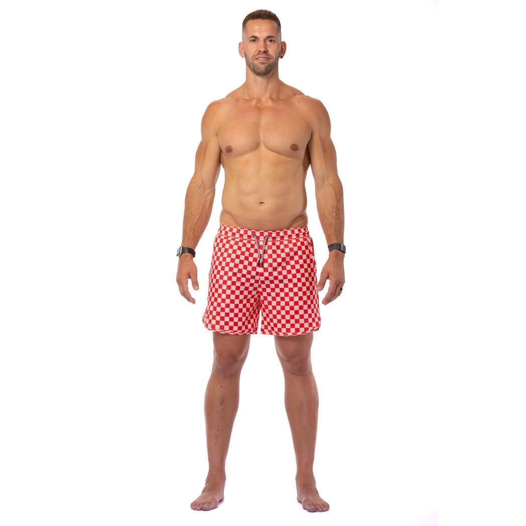 Red and cream check. Bold, playful, and unapologetically confident.