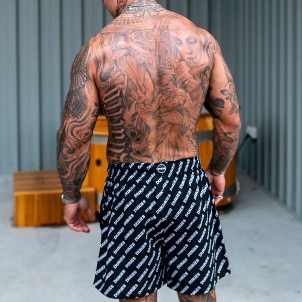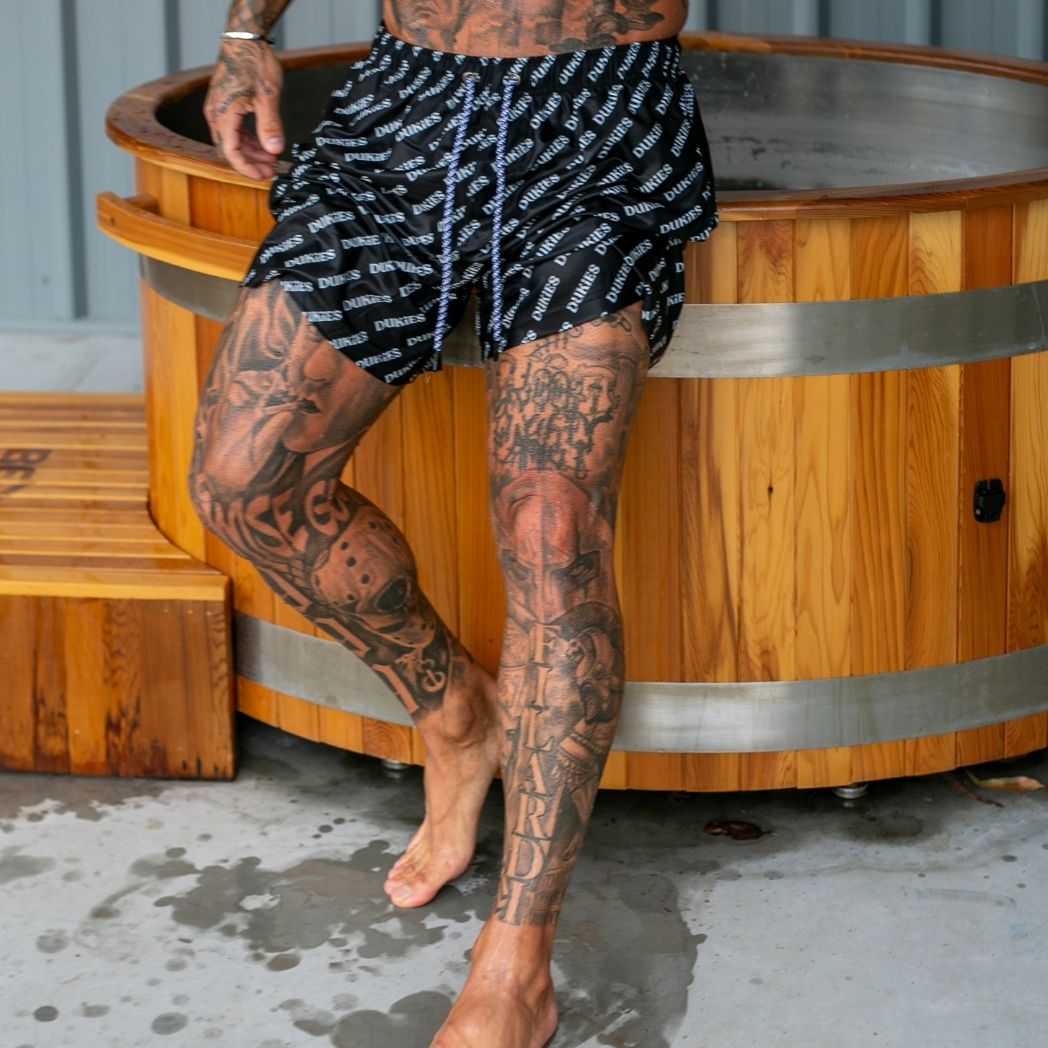 Featuring a bold diagonal DUKiES logo print, these shorts make a statement without saying too much. The all-black design keeps things versatile and easy to dress up or down.